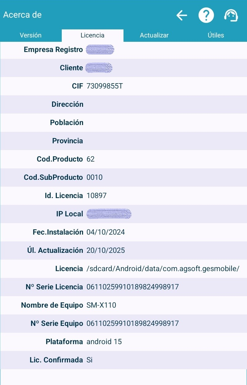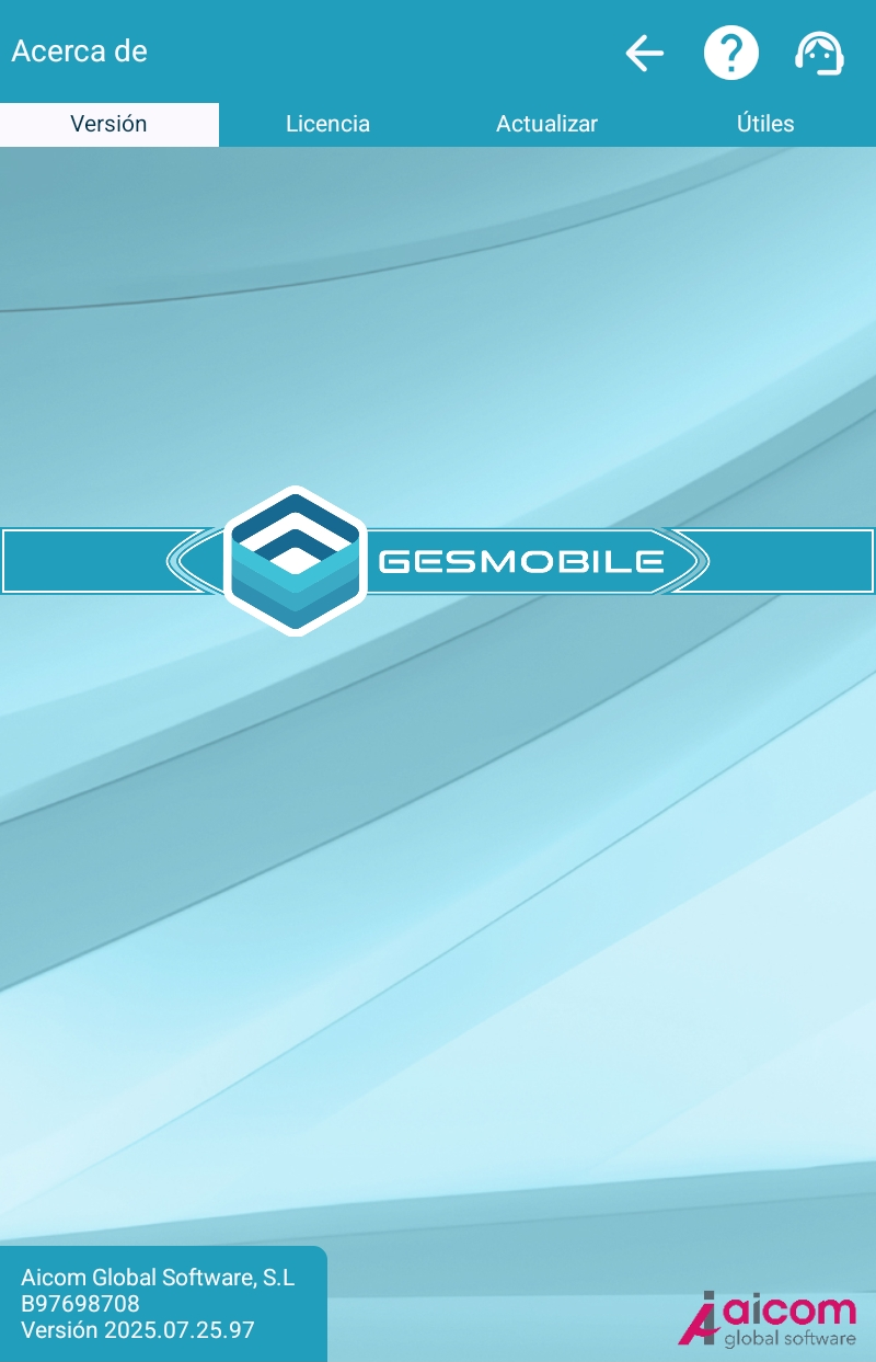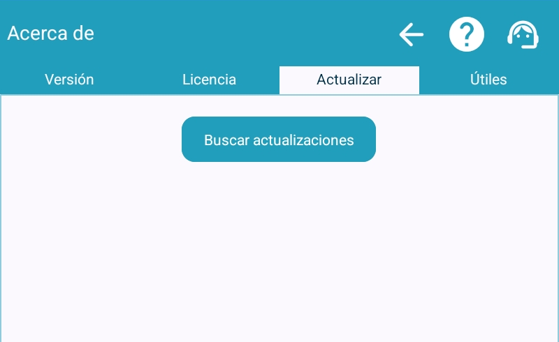 Información sobre la Aplicación, detalles de la licencia, actualizador y utilidades.