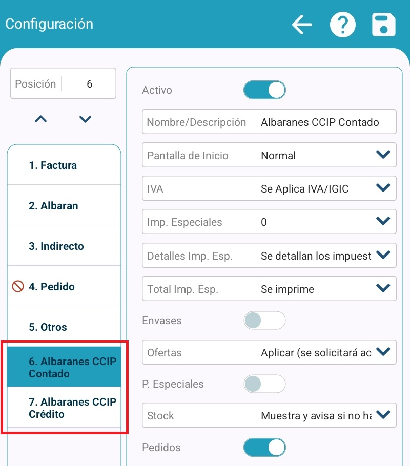 En esta opción se crean 2 nuevos Tipo de Nota llamados Albaranes CCIP Contado y Albaranes CCIP Crédito