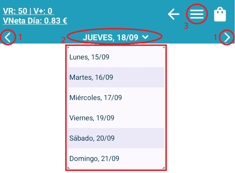 Venta Real/Realizada: x | Ventas Positivas+: xVenta Neta Día: x €