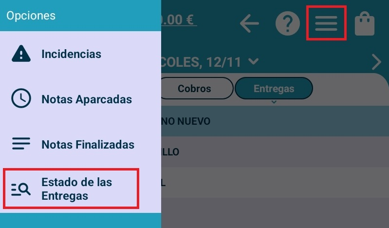 La pestaña de Entregas no estará visible en caso de no haber Entregas/Pedidos/Repartos.