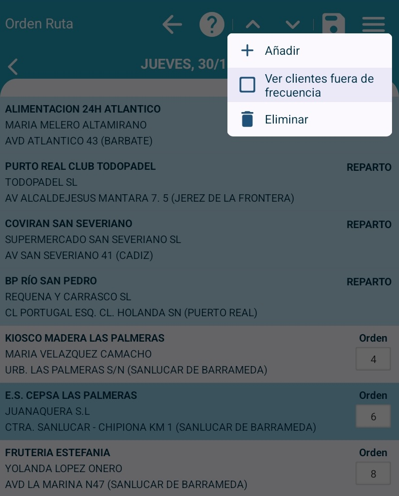 Eliminar (para Clientes de tipo Ruta y no de Reparto, tiene Orden de Ruta)