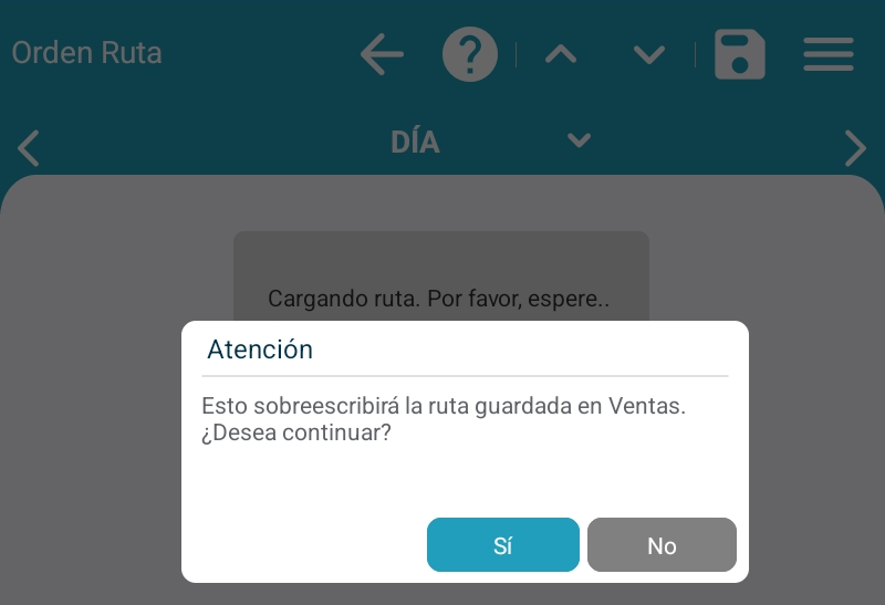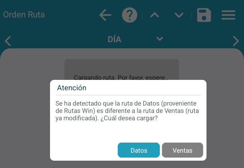 Al modificar la Ruta, puede ocurrir que la Ruta que se tiene cargada sea diferente a la que existe en los datos de Ventas... y permitirá la elección desde la información de Datos y de Ventas