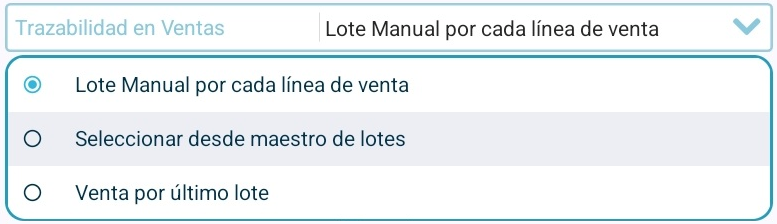 Sólo compatible con selección manual de lote por cada linea de venta.