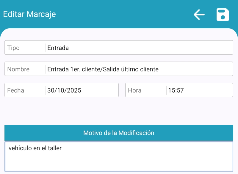 Algunos marcajes podrian no tener activado el campo adicional para añadir información