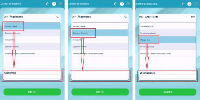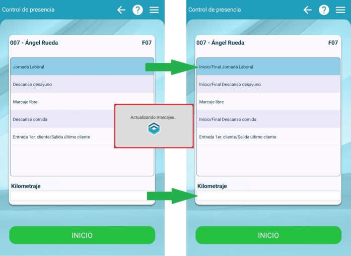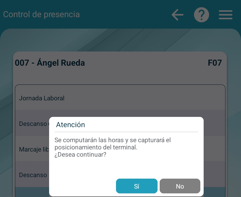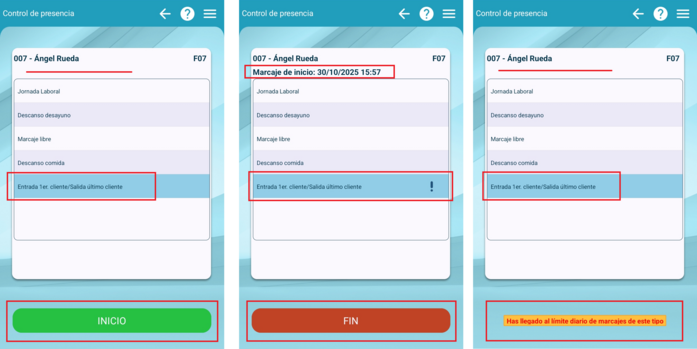 Podrían haber configuraciones y terminales que no muestren el listado de posibles fichajes, con lo que no será posible realizar el fichaje