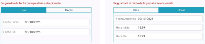 Se puede añadir ausencias, y si existe alguna, modificarla