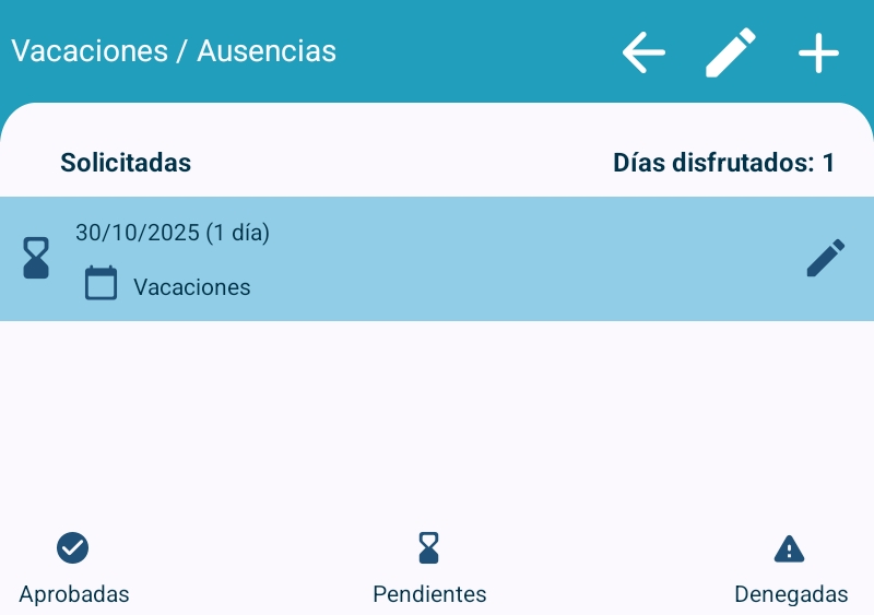 Cada ausencia se puede editar desde el botón del menú superior o desde el botón del lapicero de la misma