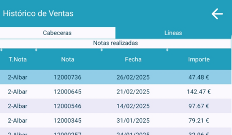 Se muestra las Notas realizadas, y las Líneas de cada Nota