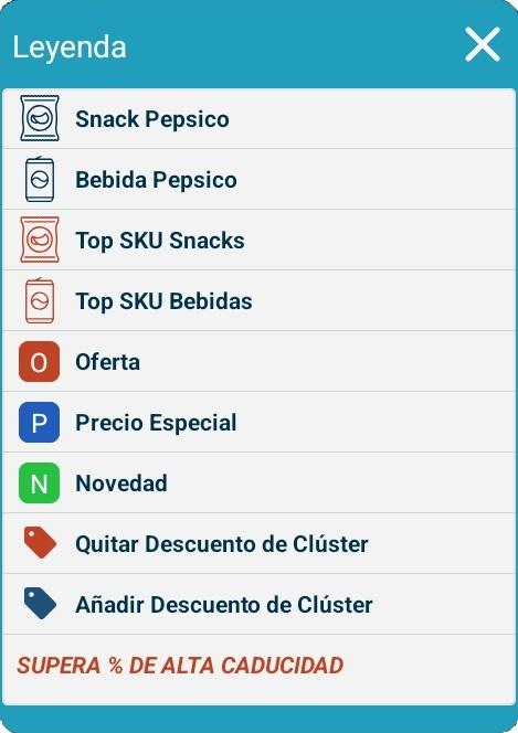 Dependiendo de la Versión de Pepsico, pueden aparecer algunos iconos más indicativos
