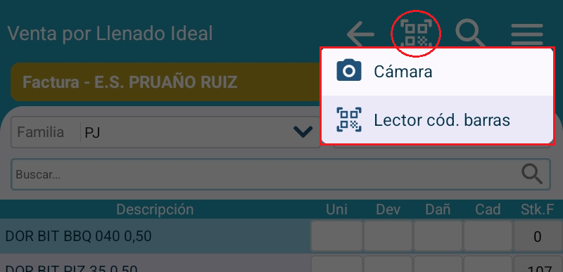 Cabe la posibilidad de introducir un artículo picando o escaneando su código de barras