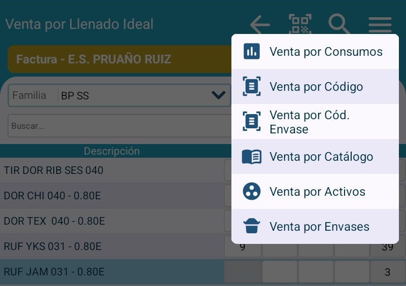 Venta por Código de Envase