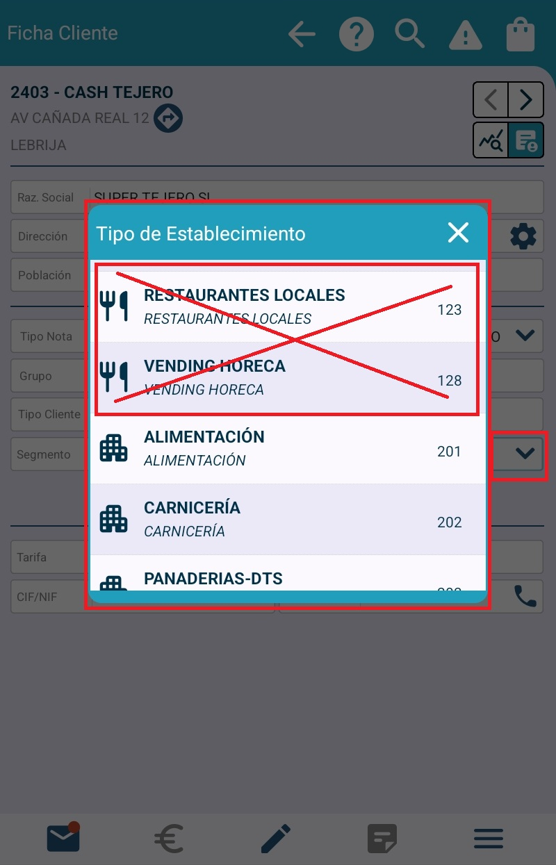 Y debe estar establecido el Tipo de Establecimiento que no sea de tipo Bar (que no tengan el código 100-199)