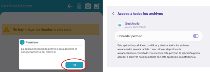 Se necesitan permisos para acceder al almacenamiento