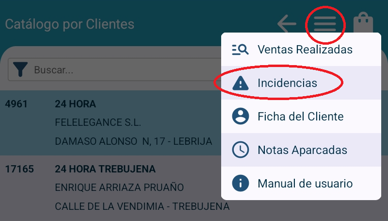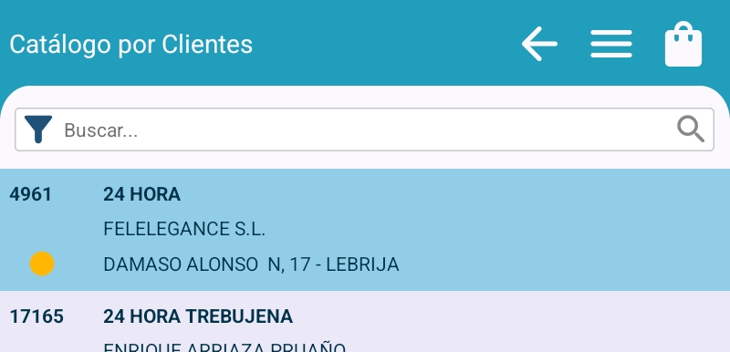 En el Catálogo por Cliente desde Catálogo, se indicará con un círculo naranja