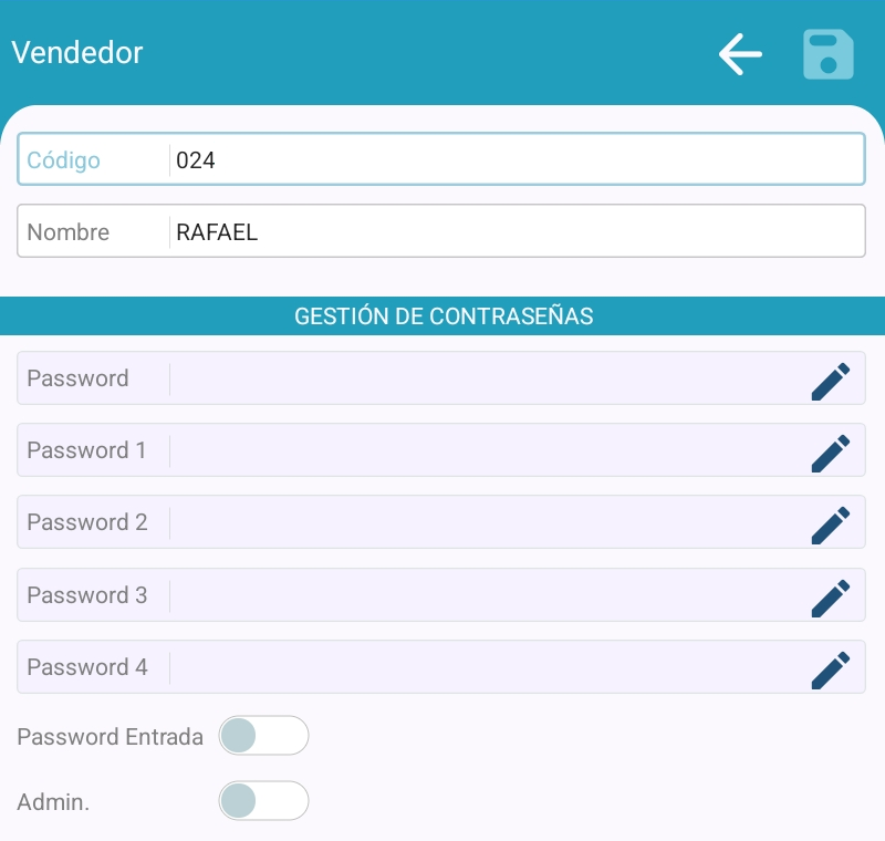 Admin: Usuario administrador con privilegios. No se pedirá contraseña para acceder a las secciones que estén bloqueadas por Nivel de Contraseña