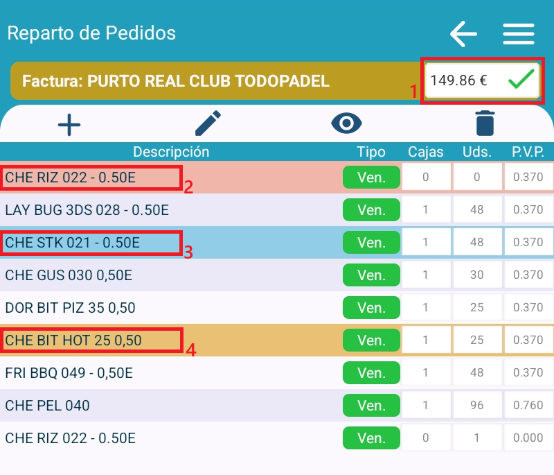 Para marcar coloreado como Entregada o Devuelta(caducado, devolución, dañado) hay que apretar con doble click sobre la línea