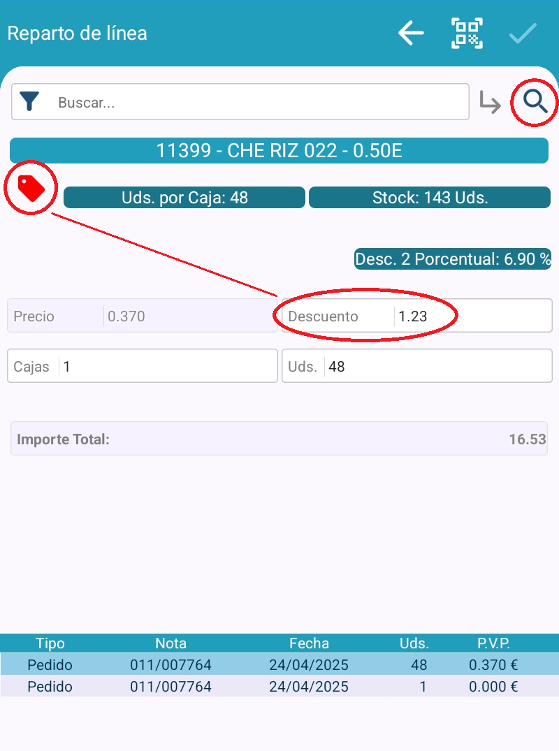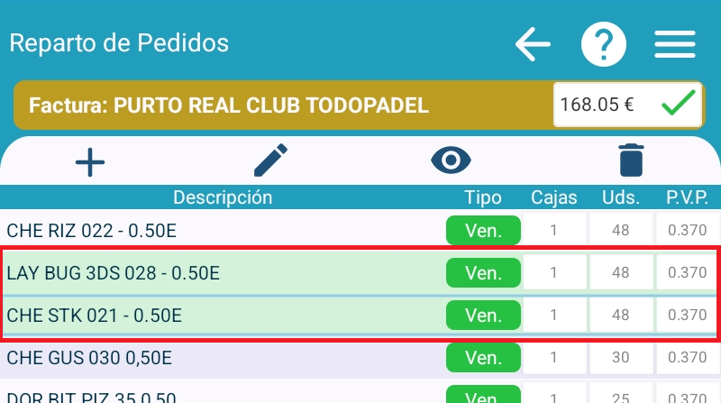 Con el botón de Editar y Ver, se puede acceder a la línea seleccionada